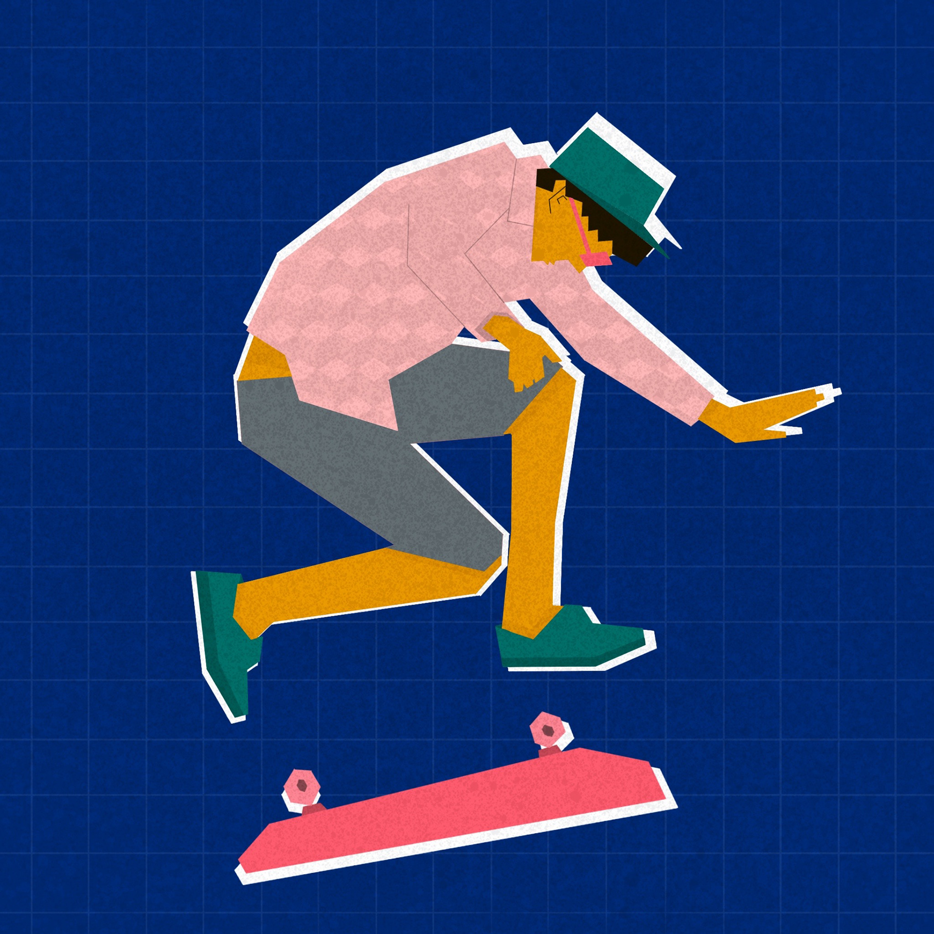 #inAction is a personal illustration series capturing dynamic human movement through a bold, stylized lens. From fencing to figure skating, each piece celebrates a different physical activity, portraying action through strong silhouettes, geometric abstraction, and playful color.